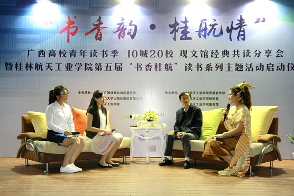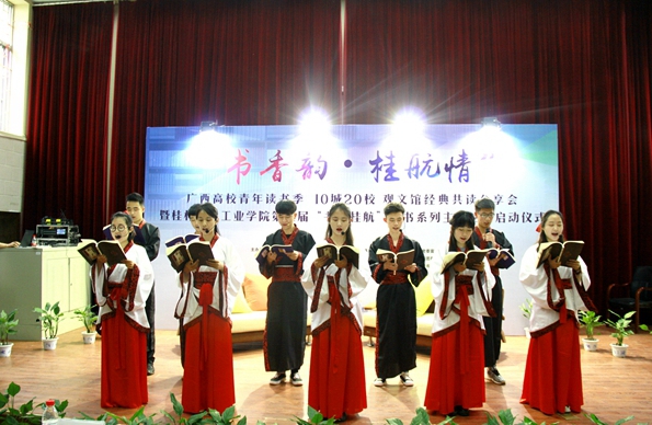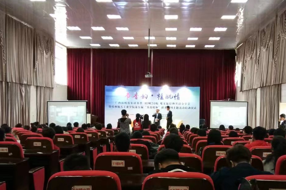 本次活动由我校党委宣传部、团委和图书馆联合开展,作为广西高校青年读书季,观文馆经典共读活动分会场,本次活动与广西10 座城市、20 所学校同时同步举行。