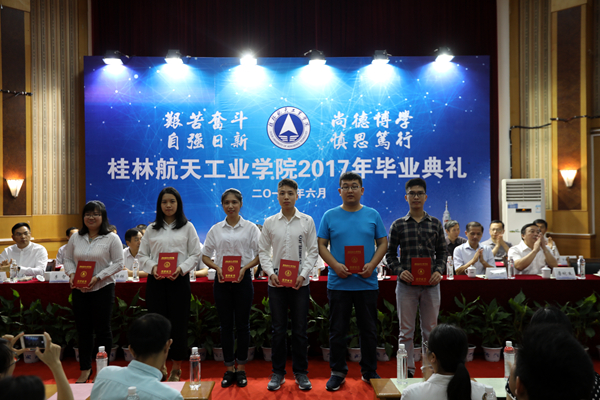 毕业典礼上,党委副书记罗延忠代表学校宣读了《bevictor伟德关于表彰2017年考取硕士研究生的毕业生的决定》、《关于授予罗文君等学生“优秀毕业生”称号的决定》、《关于颁发2017届毕业奖学金的决定》。校领导为以上奖项获得者颁奖。