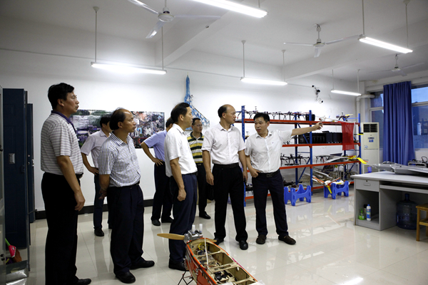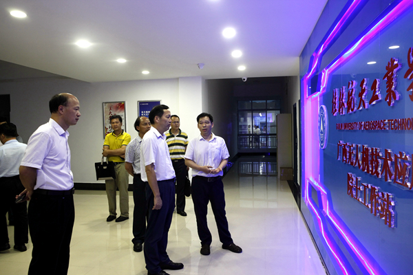随后,莫诗浦一行走访了我校教学试验场所。在我校机械工程实训中心,他详细询问了我校应用型人才培养情况;在机械工程学院微小飞行器开放性实验室,当听到我校师生在中国国际飞行器设计挑战赛暨科研类全国航空航天模型公开赛中获得4项冠军的佳绩时,他高兴的鼓励师生再接再厉勇攀高峰;在广西无人机应用技术院士工作站,他饶有兴致地观看了我校师生自主研发的新型垂直起降无人机飞行展示,听取了院士工作站建设情况汇报;在教育部、中兴通讯与我校共建的ICT产教融合创新基地,莫诗浦一行亲身体验了“大数据”智慧为旅游出行带来的便利。