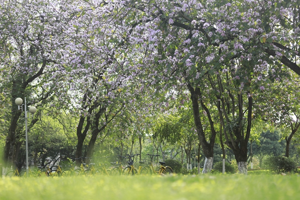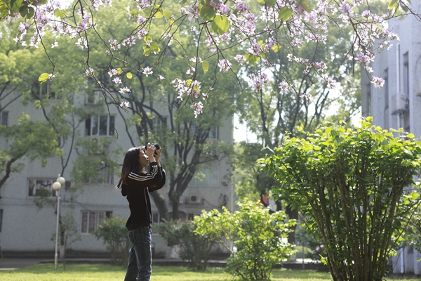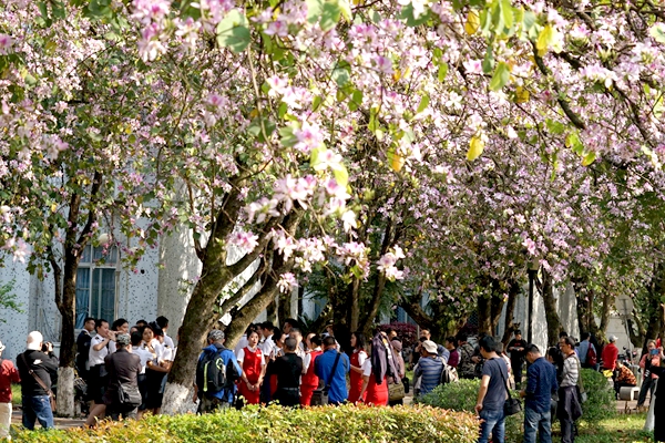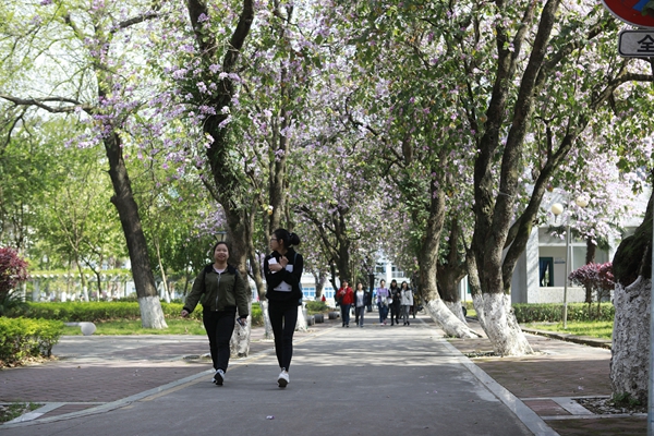 绚烂的校园紫荆美景,给前来赏花的师生游客留下了深刻的印象。我校大三学生孙筠超是北方人,他用“震撼”形容校园美景给他的感觉。“来桂林上学我才第一次见到紫荆花,这些花太美了,能在这样的校园里学习生活,我觉得很幸运,我毕业之后我也一定会想念桂航生活的。”慕名而来的市民张女士说:“我在朋友圈里看到桂航校园紫荆花盛开的消息,就叫上几个好朋友一起过来看看,校园里鸟语花香,学习生活的氛围挺好。”