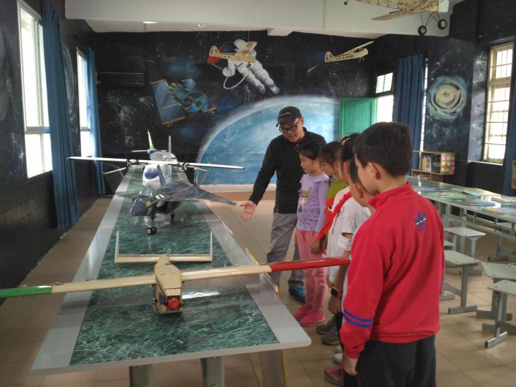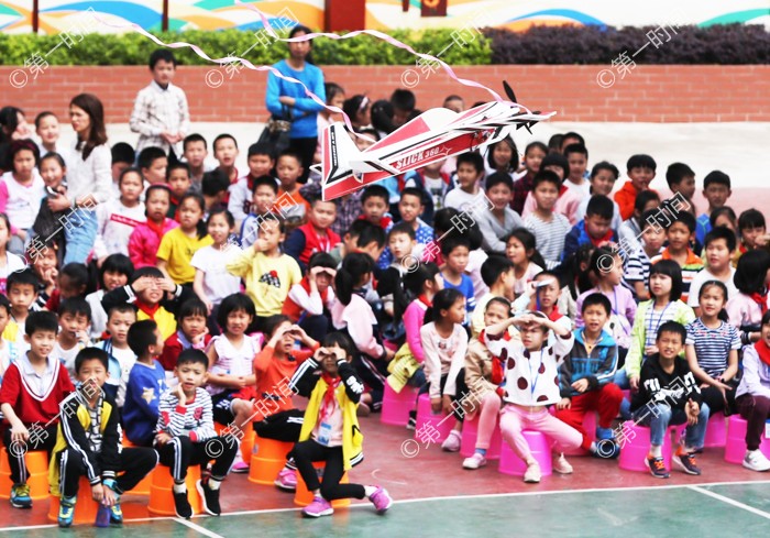 芦笛小学,我校师生开展了精彩的飞行表演伴随着马达的低鸣,航模飞行器在师生们头顶呼啸升空,或爬升或俯冲或盘旋,扣人心弦的表演,获得了小朋友们的欢笑和掌声。表演结束后,大学生走进课堂当起了小老师,为孩子们讲述飞机与航天知识,通过图文并茂的演讲以及其他多项互动问答的活动激发孩子们对航天的热情,增强孩子们“中国梦”,“航天梦”的责任感和使命感。
