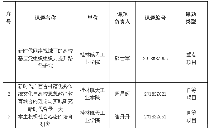 附:2018年广西高校大学生思想政治教育理论与实践研究课题立项表