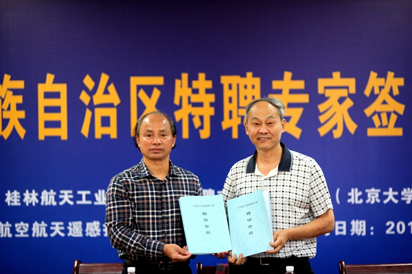 易忠代表学校与特聘专家晏磊教授签订了聘任合同,并发表了热情洋溢的讲话。他对晏教授的到来表示热烈欢迎,并强调学校的建设发展离不开人才的支撑,晏磊作为广西区特聘专家加入到学校团队,将会进一步壮大学校的人才队伍,提升学校实力。同时易忠对研究团队寄予了殷切希望,他指出,作为广西唯一一所布署有航空航天专业的院校,学校的发展与数字广西的建设高度契合,希望大家把握机会,团结协作,争取早日取得优秀成果。
