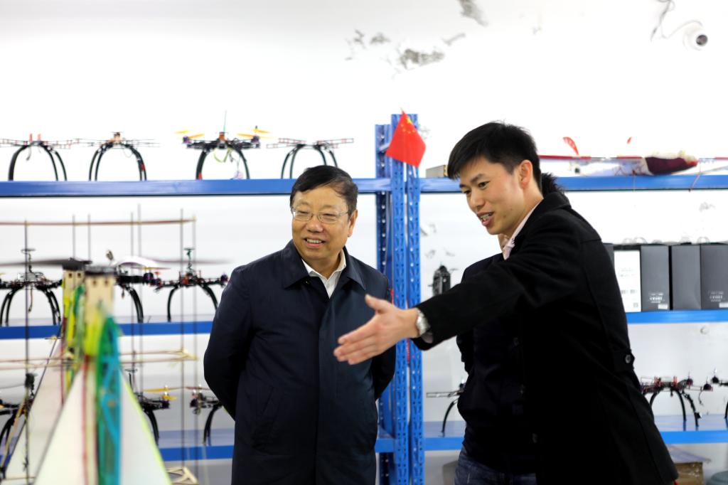 “你们这个是什么产品?用什么材料制作的?”在无人机技术应用院士工作站,赵乐秦详细了解由我校师生设计制作的多旋翼无人机等高新技术设备,“设计很精巧!希望你们能继续开发更多的高新技术产品。”赵乐秦连声称赞,并鼓励我校师生进一步提升高新技术研发能力,积极投身桂林高新产业建设。