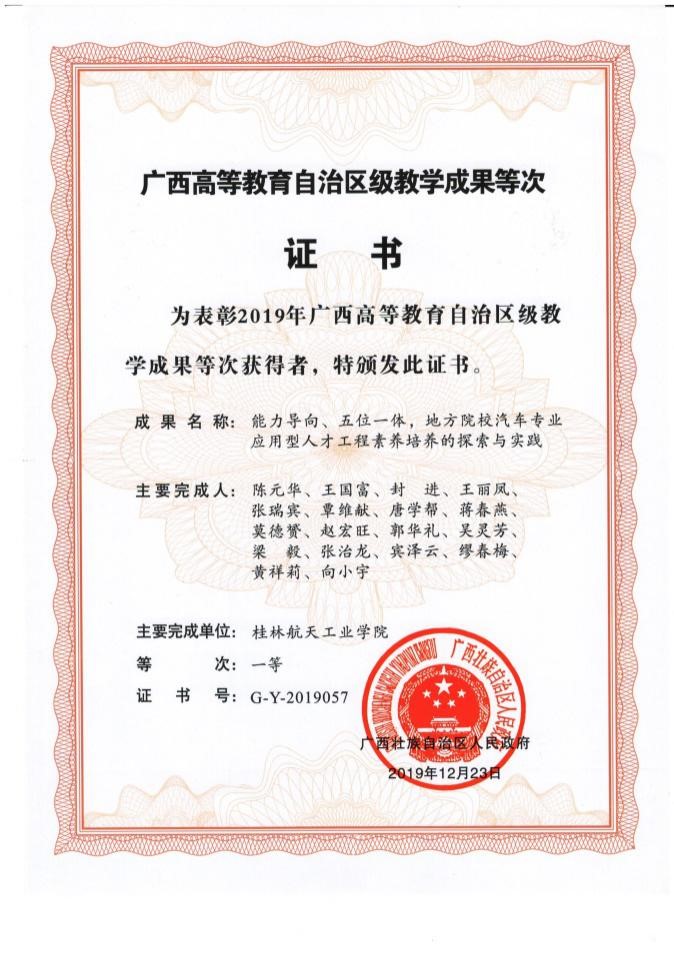 “十三五”期间,学院教学、科研工作齐驱并进。汽车服务工程专业被认定为广西区一流专业建设试点,被评为广西本科高校特色专业,获自治区财政建设经费1000万元。在最新的艾瑞深校友会网发布的全国专业排名中,我校汽车服务工程专业被评为四星级(中国高水平专业)专业,在全国206所开设该专业的高校中,排名第4。车辆工程专业获校级特色专业立项。新能源汽车工程专业增设成功获批。《汽车电器与电子控制系统》、《汽车构造》获批广西一流课程,《汽车理论》等4门课程获学校重点课程立项,完成了《汽车诊断与检测技术》等2门在线课程建设,出版了《汽车机械基础》等教材3部。教学改革方面,获广西高等教育教学成果奖一等奖1项、二等奖1项,区级教改5项,校极教改11项,校极课程思政10项,发表教改论文56篇。科学研究方面,着力推进广西汽车悬架系统工程技术中心、新能源汽车关键零部件及整车技术中心、机器人焊接重点实验室科研平台建设。全院科研立项38项,到位科研经费255.5万元,发明专利授权24项,实用新型专利81项,软件著作权71项,发表中文核心以上论文28篇。
