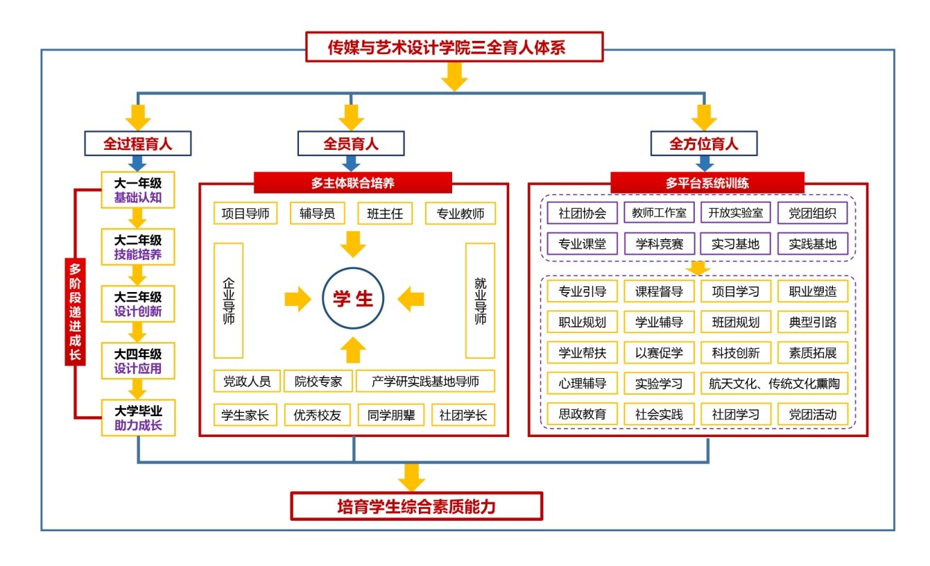 学院始终坚持以培养适应地方经济建设发展需要的应用型人才为根本,构建以艺术设计、数字媒体技术两大专业群交叉融合发展的专业架构,形成交叉融合的学科办学特色。以服务地方经济社会、传承创新区域文化和航天文化为支撑,坚持以专业内涵建设为动力,构建和完善专业体系,逐步形成了项目驱动式“多阶段递进成长、多主体联合培养、多平台系统训练”的实践教学体系,区域文化与航天文化传承与发展并重的应用型人才培养模式。