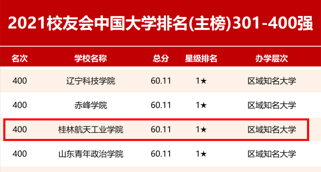 3月25日,第三方大学评价机构艾瑞深中国校友会网(cuaa.net)正式公布《2021校友会中国大学排名—高考志愿填报指南》,最新发布校友会2021中国大学排名榜单。校友会2021中国大学排名评价指标体系依据国务院印发的《深化新时代教育评价改革总体方案》进行了优化与调整,我校在部分新增指标方面表现突出,综合排名达到全国第400位,较2020年上升130位。