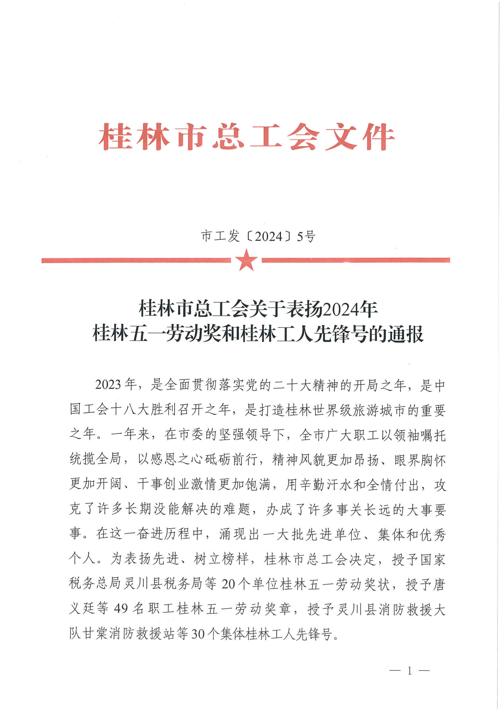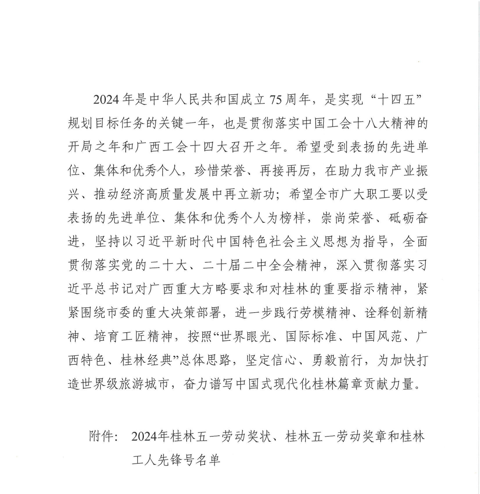 据了解,桂林五一劳动奖章每两年评选一次,用于表彰在本职岗位中取得显著成绩,为地方经济建设和社会发展作出突出贡献的先进个人。此次桂林市总工会共授予20个单位桂林市五一劳动奖状、49名职工桂林市五一劳动奖章、30个集体桂林工人先锋号。