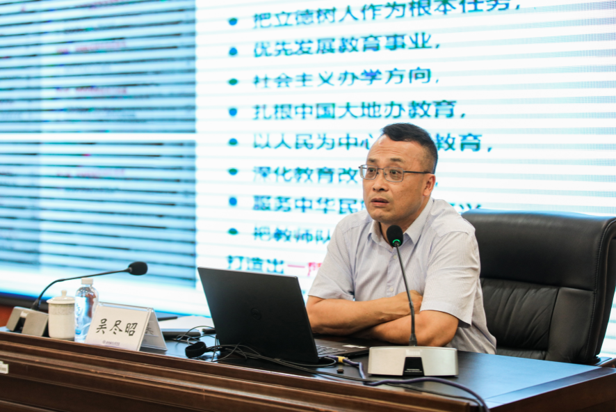 吴尽昭围绕学习贯彻习近平总书记关于教育的重要论述,从“教好学生、做好研究、当好老师、建好学科、搞好管理、抓好党建”等六个方面,深入阐述了一所好大学的观测指标和质量要求,客观分析了学校当前面临的困难问题,并结合实际提出解决方案。