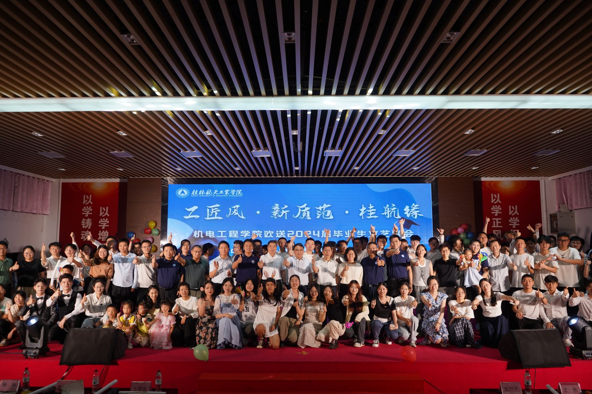 为欢送2024届毕业生,机电工程学院于6月14日举行“工匠风·新质范·桂航缘”主题文艺晚会。学校副校长张烈平,党校办(校友办)、宣传部、学工处、教务处、保卫处、机电工程学院等相关部门领导出席晚会,桂林力源集团代表、校友代表及机电工程学院300余名师生代表共同见证了这一难忘的时刻,并为2024届机电学子送出最真诚的祝福。晚会上,张烈平等领导、嘉宾为校级优秀毕业生、考取硕士研究生毕业生、自治区级优秀毕业生颁奖。