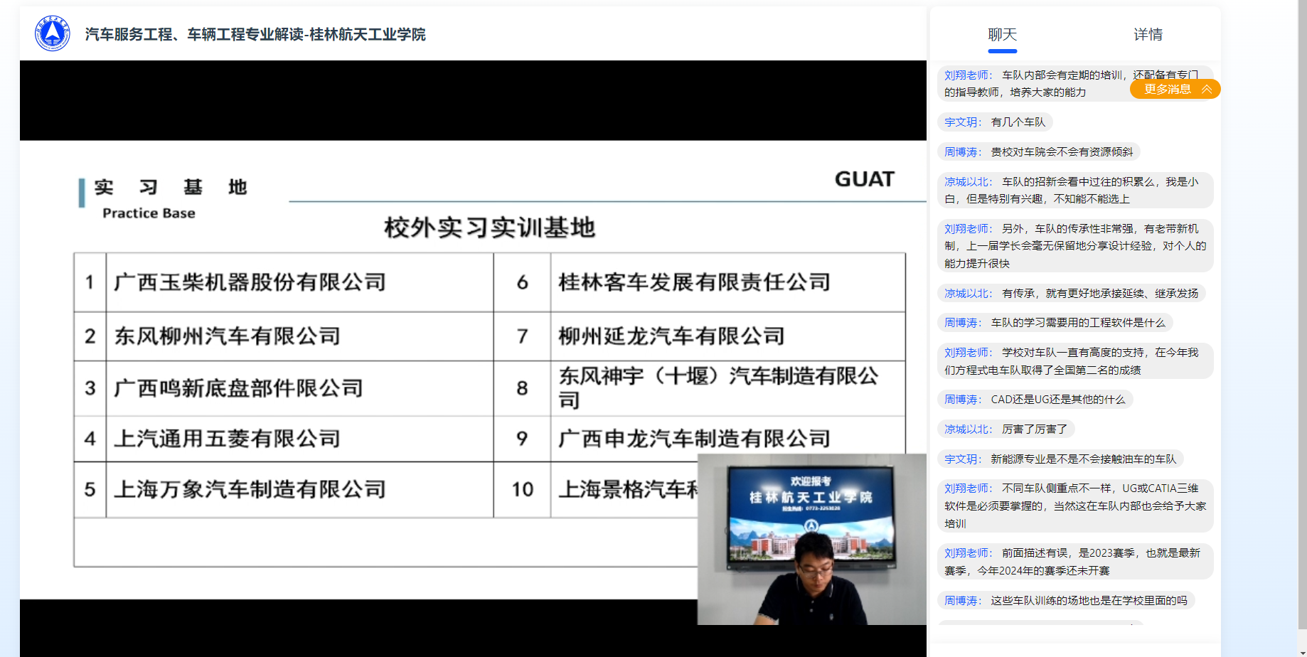 在直播过程中,学校招生宣传人员、各专业骨干教师积极和考生、家长互动,为考生和家长解答关于招生章程、专业办学、培养就业等各类问题,累计直播时长超60个小时。